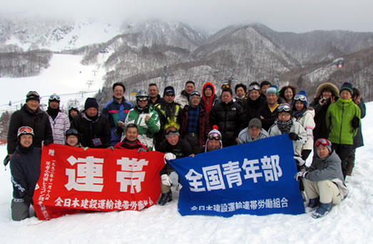 3月1日~4日、山形県蔵王温泉スキー場にて、全国青年部主催の「春を呼ぶスキーツアー」が開催され、各支部から総勢31名の仲間が結集し、スキーやスノーボードを通じて交流を図りました。 初日は飛行機で伊丹から仙台までフライトし、仙台からはバスで移動し蔵王温泉に到着。 スキー場に着くと、早速ウェアに着替えてゲレンデに向かう人や、ゆっくり温泉につかり美味しい料理を食べてお酒を飲む人、初日から、それぞれの楽しみ方で時間を過ごしていました。 二日目の夕食時には交流会を開催。乾杯後、美味しい料理でお腹が満たされた頃に参加者が自己紹介を行い、各支部から持ち寄られた景品のかかったビンゴ大会が開かれました。 その後行われたホテルのラウンジでのカラオケ大会では、昼間のゲレンデでの疲れを全く感じさせないくらいの大盛り上がりでした。 このツアーは、日頃接点の少ない組合員や他の支部の方とも交流ができて、人間関係の構築と団結強化が図れる、大変素晴らしい企画です。 まだ参加されていない方は、是非来年参加してみてはいかがですか?遠い蔵王の地で素敵な時間を過ごしてみませんか。 日頃、接点の少ないメンバーと交流を図った。